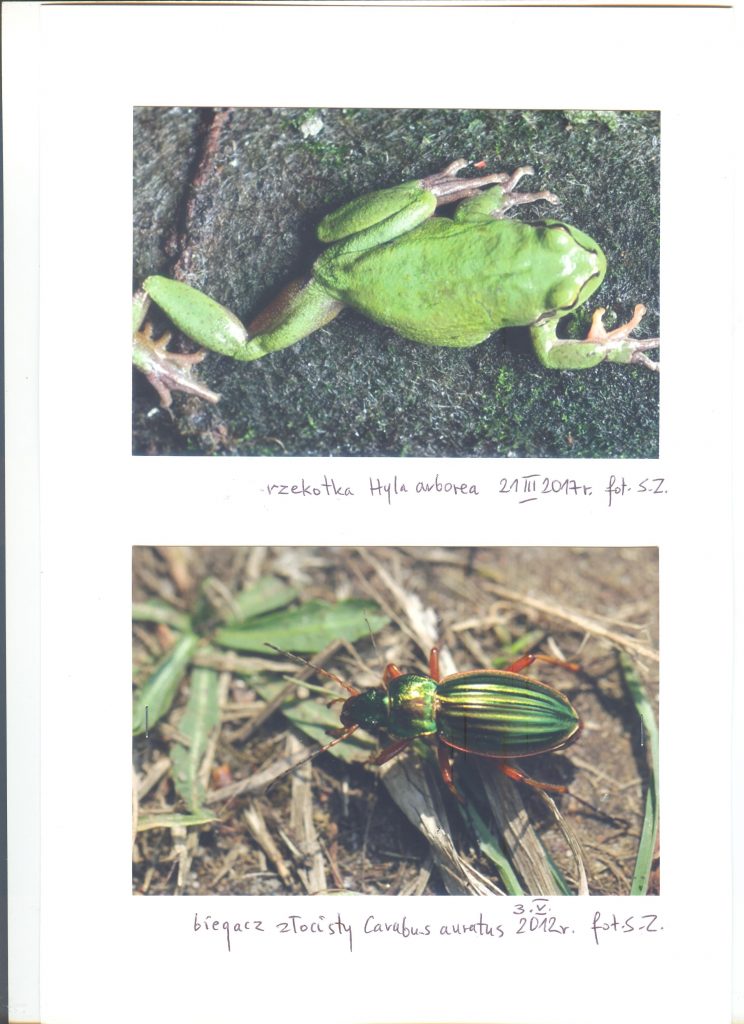 /// Do dokumentacji załączono także 8 zdjęć gatunków specjalnej troski. Są to: rzekotka drzewna, biegacz złocisty, traszka zwyczajna, krogulec, tych cieśla, żuraw, jeż zachodni. [aut. wszystkich zdjęć - S. Zieliński] ///