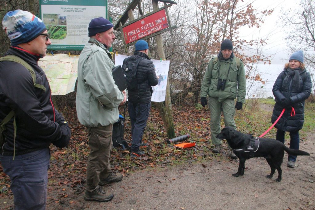 Mam sporo do powiedzenia, ale zimno. 🙂 fot. Michał KochańczykAsymetrycznie wyszło. 🙂 W tle Maciek szacuje prędkość i siłę wiatru wg kąta odchylenia mapy od pionu. fot. Michał Kochańczyk Wafel, grzeczny pies 🙂 fot. Michał KochańczykJest i Krysia. Około 100 lat temu głaz ten badał dr Feliks Krawiec.... fot. Marcin DomańskiMapy, tablica. Na niej ani słowa o tych działaniach Nadleśnictwa Kartuzy z przeszłości, którymi trudno by się było tu chwalić. Ale to zostało przypomniane, powiedziane przez prelegenta. fot. Krystyna CrystalIwonka, fizyk i matematyk, ale i przyrodniczka. Szefowa Wschodniopomorskiego Koła Terenowego Klubu Przyrodników. fot. Michał KochańczykKaszubski Park Narodowy - prędzej czy później i tak powstanie. fot. albo Dana Czachor albo AndrzejNa banerze w prawym dolnym rogu dr Feliks Krawiec - duchowy Patron tego projektu. fot. Dana CzachorNad Jeziorem Kamiennym. Z lewej Andrzej, ubezpiecza badania Maćka. 🙂 fot. Iwona ZielińskaTorfowisko w rezerwacie "Żurawie Błota". Na obrzeżach m. in. borówka bagienna i bagno zwyczajne. fot. Iwona ZielińskaWidłak jałowcowaty Lycopodium annotinum w pobliżu rezerwatu "Żurawie Błota". fot. Agnieszka KukowskaRelikt subglacjalny paproć podrzeń żebrowiec Blechnum spicant na granicy rezerwatu "Żurawie Błota". fot. Sławek ZielińskiDrogowskaz. fot. Iwonka i Krysia i Michał 🙂Granicą rezerwatu "Żurawie Błota" na południe... fot. Sławek ZielińskiI jeszcze płat widłaka jałowcowatego, bo tego nigdy za wiele. 🙂 fot. Michał KochańczykWafel. fot. Sławek ZielińskiWafel. Reaktywacja... fot. Sławek Zieliński...i chwila po, profil z lewej... fot. Sławek Zieliński... i chwila po, profil z prawej. fot. Sławek Zieliński