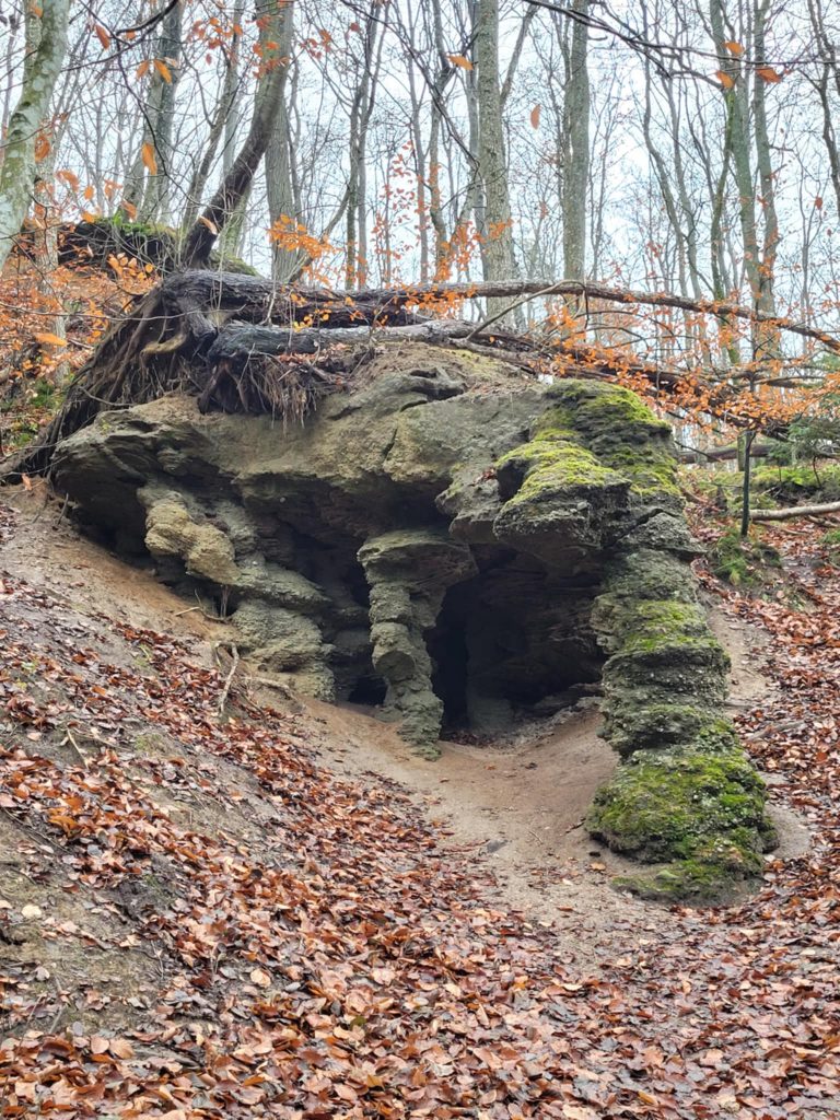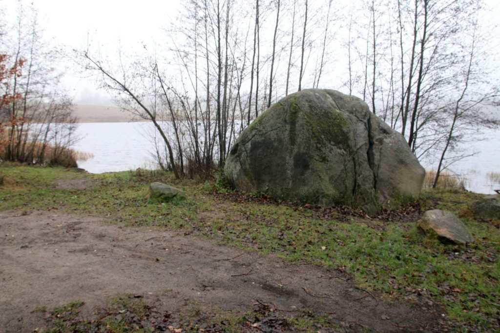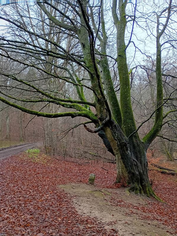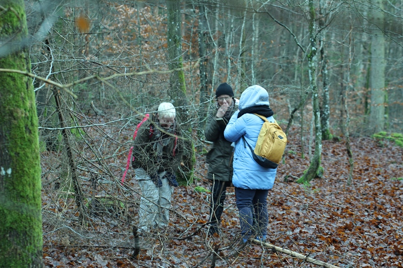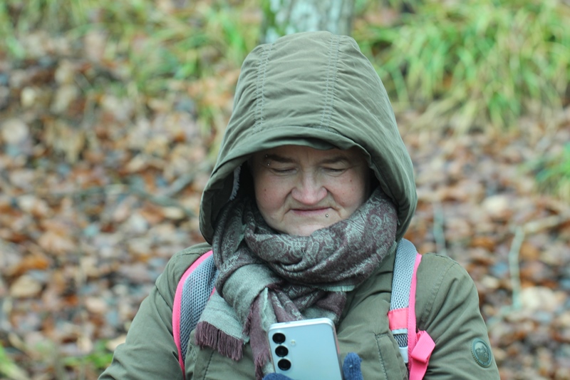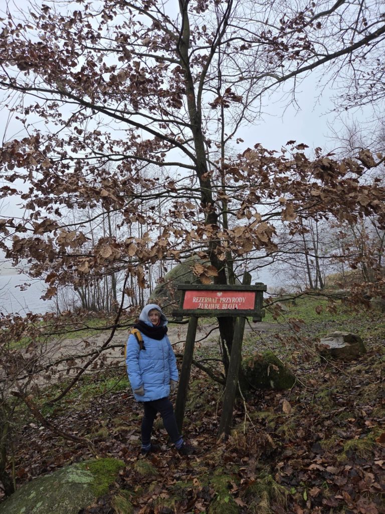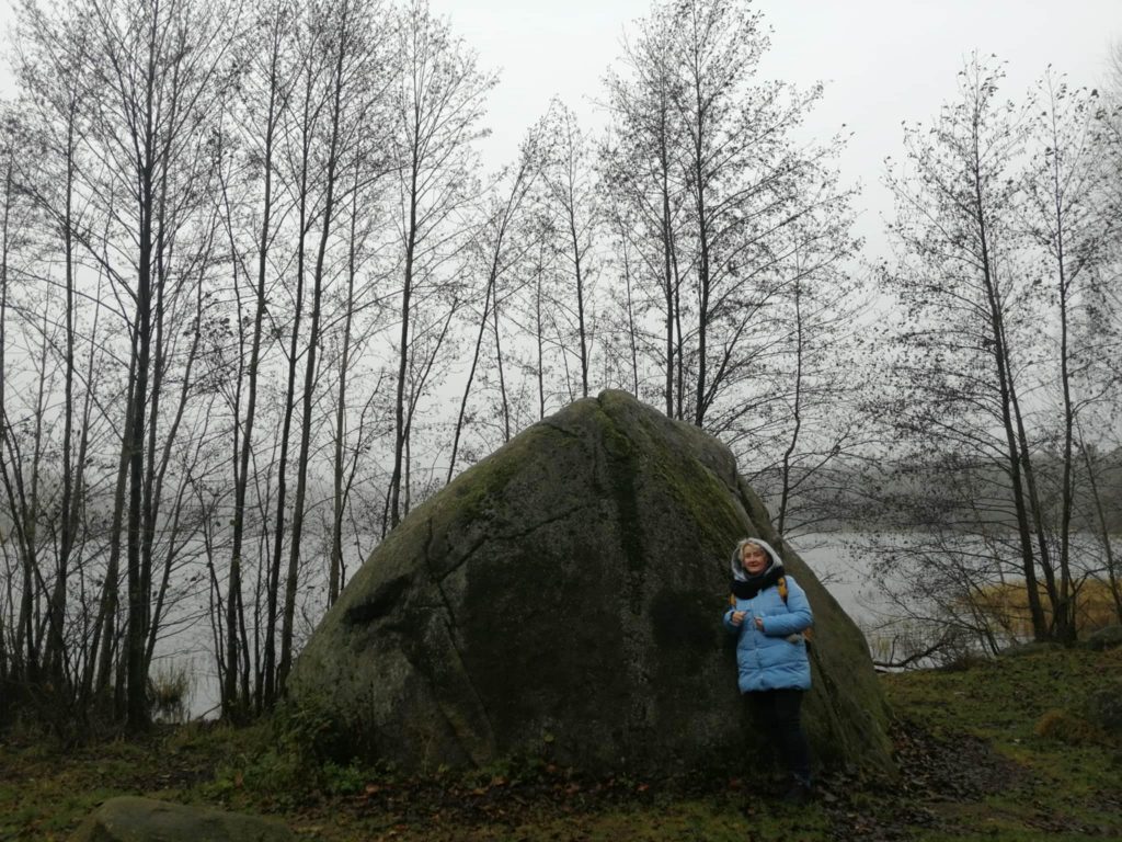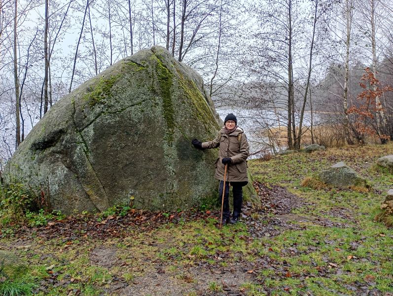 przytulić się delikatnie do głazu narzutowego.... nie grzech... [wspinać się na takowy... grzech niewybaczalny] /// wycieczka przyrodnicza w Lasy Mirachowskie (projektowany Kaszubski Park Narodowy) w dniu 30 XI 2025 r. /// organizator Wschodniopomorskie Koło Terenowe Klubu Przyrodników /// a na zdjęciu do Diabelskiego Kamienia na brzegu Jeziora Kamiennego w rezerwacie Żurawie Błota przytula się Szefowa rzeczonego Koła Iwona Zielińska ///