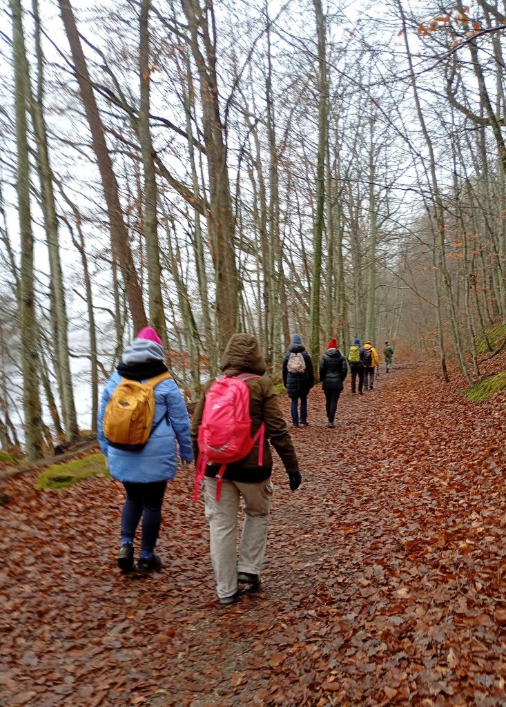 Betonowy karmnik, chyba pamięta jeszcze Edwarda Gierka. fot. Sławek ZielińskiA to dokumentacja Krysi. fot. Krystyna CrystalCiągle jeszcze w Rynnie Potęgowskiej. Nieoznaczony śluzowiec? fot. Iwona ZielińskaNieco bliżej... śluzowiec? Może jednak jakiś grzyb? Zabrakło Marcina S. Wilgi... fot. Sławek ZielińskiWygląda na trzęsaka listkowatego. fot. Iwona ZielińskaOsobnik jw. fot. Krystyna CrystalPluskwiak puklica rudnica. Nieco śnięta. Dłoń SZ :). Znalazła i fotografowała Agnieszka Kukowska.Tu chyba mieszkał lub mieszka borsuk, może lis (wtórnie). fot. Agnieszka KukowskaKulinaria. Przeżyciowo 🙂 Dana, Krysia, Iwonka. fot. Sławek ZielińskiIwonka. fot. SławekDana. fot. SławekJeszcze Rynna Potęgowska, wschodnia rubież. fot. Iwona ZielińskaBluszcz Krysi. fot. Krystyna CrystalWędrujemy. Mija czwarta godzina. fot. Sławek ZielińskiOpuszczona osada ludzka. fot. Sławek ZielińskiJabłonie. Mają swoje lata. fot. Iwona Zielińska