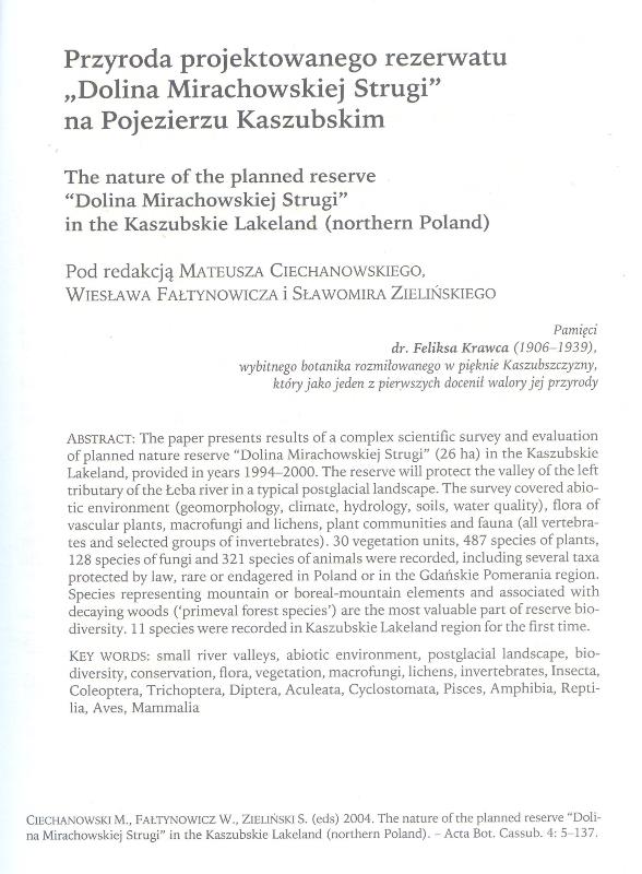 Po 26 latach od momentu sformułowania na "papierze", tj. w mojej rozprawie doktorskiej [1], a 5 lat później w publikacji z tego "papieru" [2], propozycji utworzenia rezerwatu przyrody "Dolina Mirachowskiej Strugi" w Lasach Mirachowskich na Pojezierzu Kaszubskim (Kaszubski Park Krajobrazowy, projektowany Kaszubski Park Narodowy), rezerwat formalnie powstał. Wcześniej nieprzeciętną jakość tego terenu wskazywali m. in. śp. dr Feliks Krawiec prof. Wiesław Fałtynowicz czy prof. Jacek Herbich w swoich publikacjach.