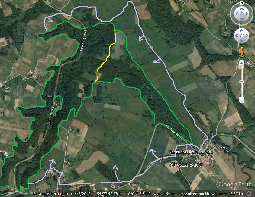 Widać nasze wozy. Ale to jeszcze nie koniec... fot. Iwona ZielińskaDana, Michał, Krysia, Iwonka, Marcin. fot. SławekMichał zmierza ku Mirachowskiej Strudze. fot. Sławek ZielińskiMirachowska Struga, nieco wyżej (wg biegu rzeki) utworzono w tym roku rezerwat "Dolina Mirachowskiej Strugi" na minimalistycznej powierzchni ok. 15ha. fot. Agnieszka Kukowska Powierzchnia maksymalistyczna - przyrodniczo optymalna (zielone granice). Koncepcja autorstwa S.Zielińskiego na prośbę Klubu Przyrodników.Powstanie rezerwatu poprzedziło co najmniej 35 lat starań, a przez wiele lat obszar ten miał najlepszą i najwszechstronniejszą dokumentację przyrodniczą w całym regionie gdańskim.Dolina Mirachowskiej Strugi. Lata 90. ubiegłego wieku. fot. Sławek Zieliński