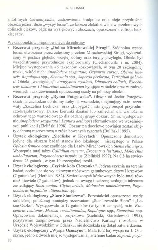 [1] Zieliński S. 1999. (mscr.). Kózkowate (Coleoptera: Cerambycidae) Lasów Mirachowskich na Pojezierzu Kaszubskim. Rozprawa doktorska, Katedra Entomologii Leśnej Akademii Rolniczej w Krakowie, Kraków-Gdańsk.