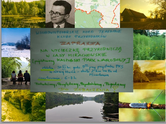 w dniu dzisiejszym odbyła się wycieczka przyrodnicza do Lasów Mirachowskich = projektowanego Kaszubskiego Parku Narodowego, zainicjowana przez Wschodniopomorskie Koło Terenowe Klubu Przyrodników reprezentowane przez Iwona Zielińska Dana Basik Cz i piszący te słowa /// jak się okazało w pragmatyce w wypadzie uczestniczyło... [...do wyboru, wg przekonań czy preferencji]: 12-tu apostołów LUB parszywa dwunastka LUB 12-tu pancernych i pies... Wafel ) ///w imieniu organizatorów dziękujemy WSZYSTKIM - to była dobra twarda merytorycznie i niezmordowana fizycznie EKIPA już są fotki z tego wypadu na profilu Krystyna Crystal [dzięki, Krysiu], a ja, jak się pozbieram, pewnie jakąś relację krótką na mikrobiotop.pl sklecę.... /// a na zdjęciu górnym autorstwa Dana Basik Cz w rezerwacie przyrody "Żurawie Błota" przy Diabelskim Kamieniu nad Jez. Kamiennym od lewej: Michał (Kochańczyk); Andrzej, Maciej Jankowski Iwona Zielińska Krystyna Crystal Agnieszka Kukowska Paweł Szutowicz Mikołaj Asia bliżej gleby - piszący te słowa /// na banerze w prawym dolnym rogu fotka dr Feliksa Krawca - duchowego patrona inicjatywy utworzenia tego PARKU NARODOWEGO na zdjęciu dolnym i nieco niewyraźnym autorstwa Sławka, czyli mnie, dołączył Marcin Domanski (drugi od lewej) no i jest Dana Basik Cz między Maćkiem i Iwonką /// KOCHANE/KOCHANI, domniemywam, a naukowo (teza) to wiem, że wrócimy tu niebawem w mocno poszerzonym gronie.... DZIĘKUJĘ